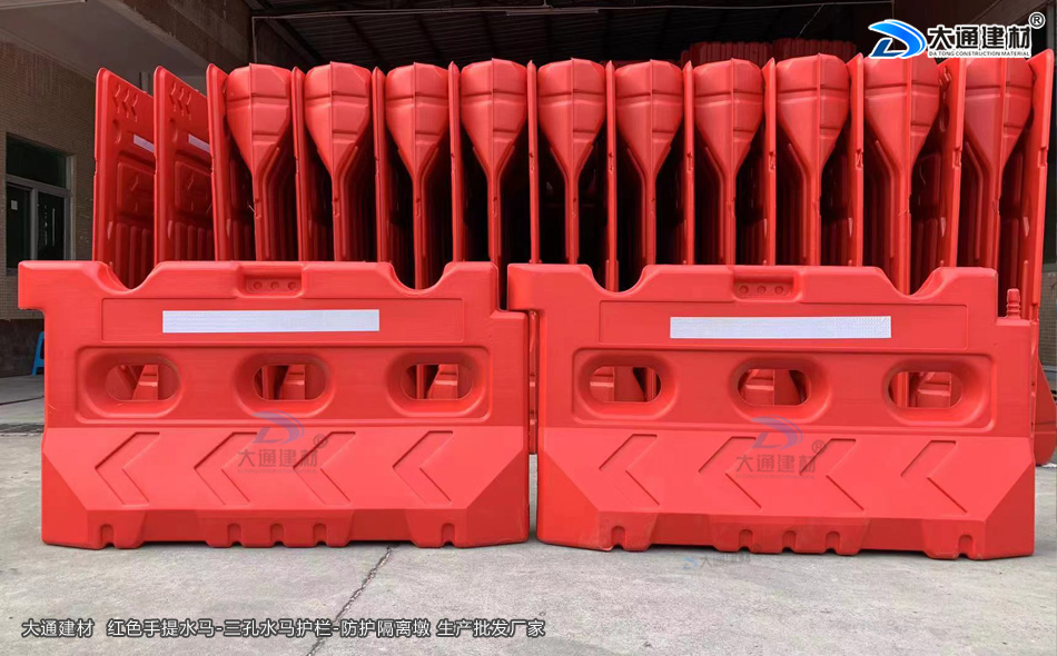 大通建材手提水馬又稱注水水馬、施工水馬、塑料水馬圍欄、塑料圍欄、塑料隔離欄、隔離水馬、交通水馬等,用于城市道路、公路、高速隔離、工地建設(shè)、施工地、收費站、路口、廣場、商場引導(dǎo)隔離等地方 臨時分道路使用。