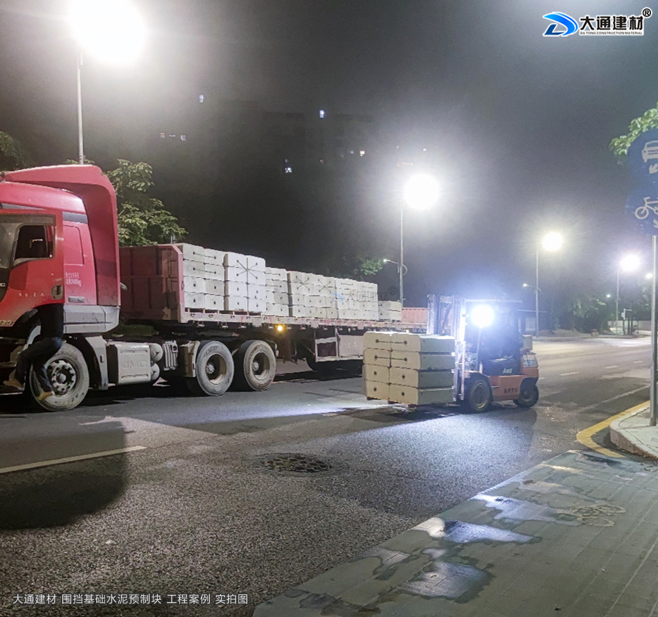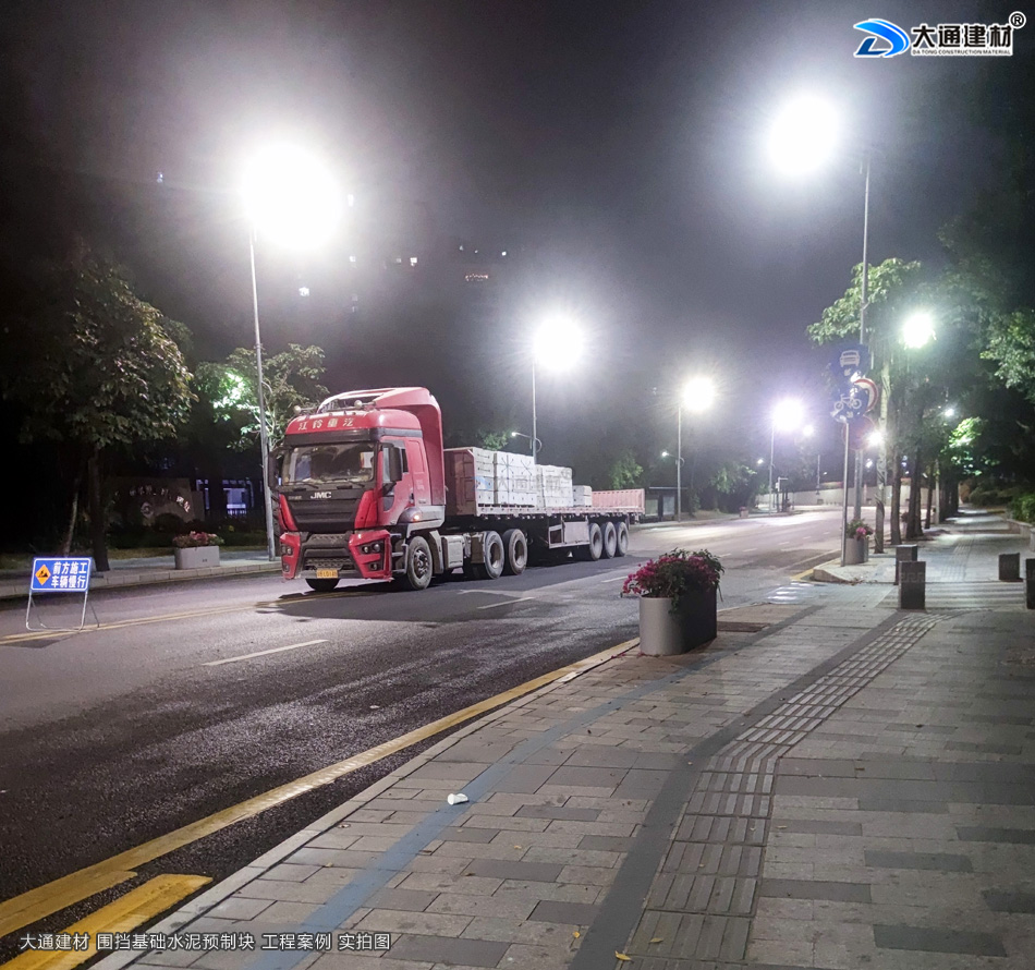 大通建材圍擋基礎塊專業配送安裝團隊星夜出發