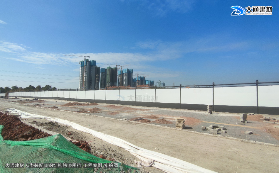 深圳市大通建材生產的符合東莞市政標準的C型鋼結構圍擋,已應用于施工工地中,起隔離防護作用,避免因施工的沙石、塵土亂飛,影響周圍鄰近居民的生活;大通圍擋可以讓施工以外的人看不到施工內部的狀況,外面也不會被施工的雜亂環境所影響,打造美好的城市風貌。