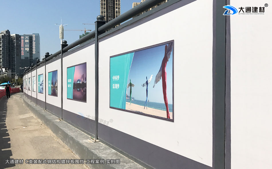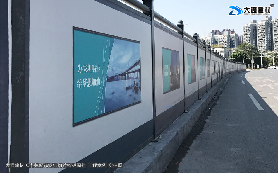 深圳市大通建材深圳標準圍擋鍍鋅板C款是一款新型的裝配式鋼結構圍擋,符合市政新標準、拆裝方便、結構牢固、抗風力達到10級、安全性高,圍擋生產源頭廠家直接銷售、價格更便宜。