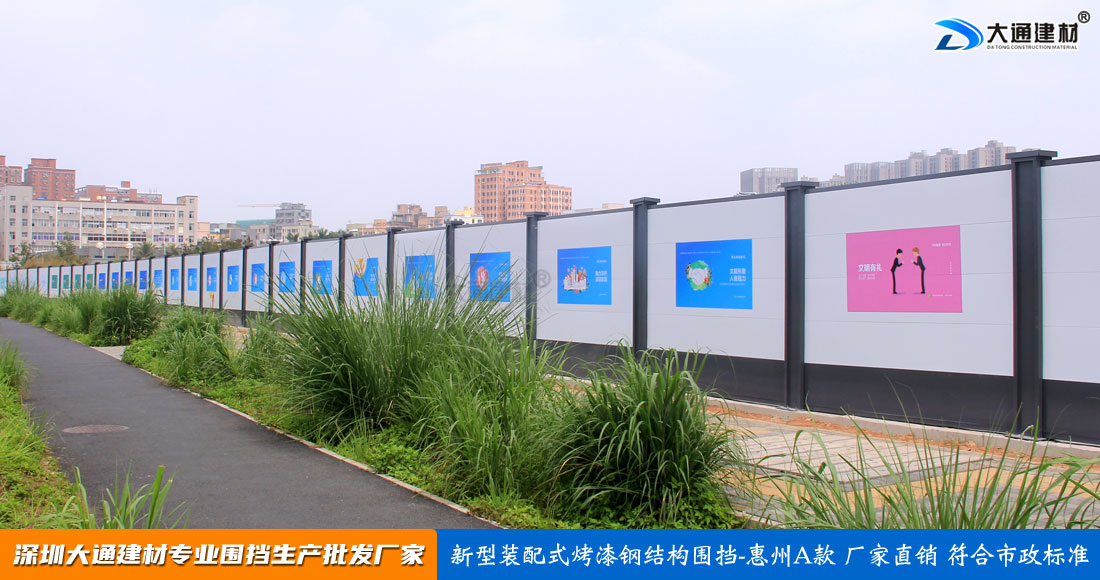 深圳市大通建材有限公司,大格局、通天下! 新型裝配式鋼結構圍擋A款/B款/C款,PVC圍擋,圍擋基礎,工地大門等產品生產廠家電話13826562448