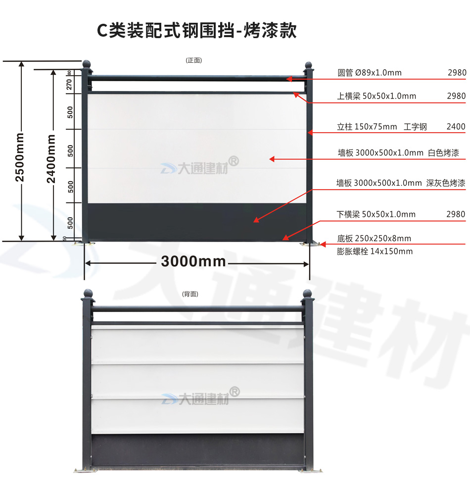 深圳大通建材 裝配式鋼結(jié)構(gòu)烤漆圍擋-惠州C款  生產(chǎn)批發(fā)源頭廠家