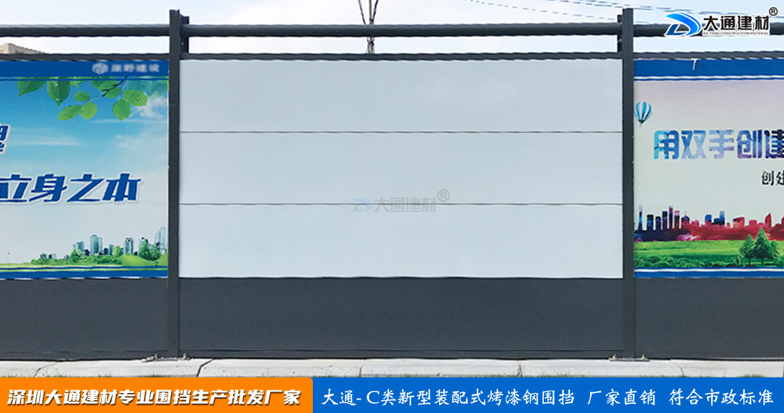 深圳市大通建材有限公司,大格局、通天下! 新型裝配式鋼結(jié)構(gòu)圍擋A款/B款/C款,PVC圍擋,圍擋基礎(chǔ),工地大門等產(chǎn)品生產(chǎn)廠家電話13826562448